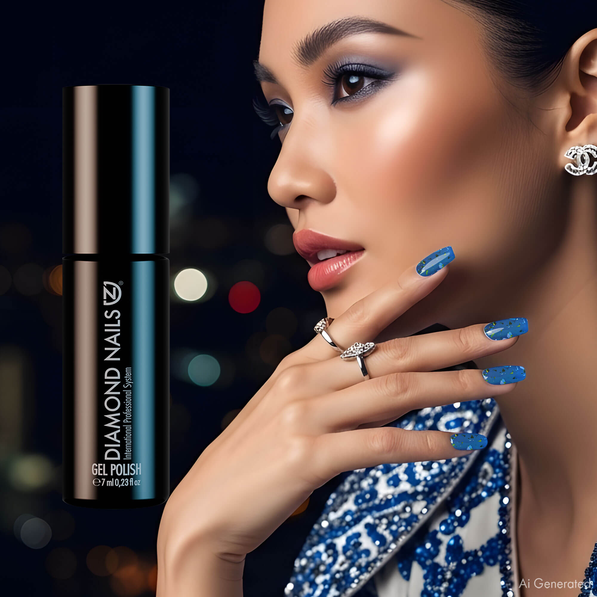 Instrucciones de uso del Gel Esmalte Semipermanente – Midnight Glam Azul Zafiro – DN309 – 7ml – HEMA Free – Diamond Nails