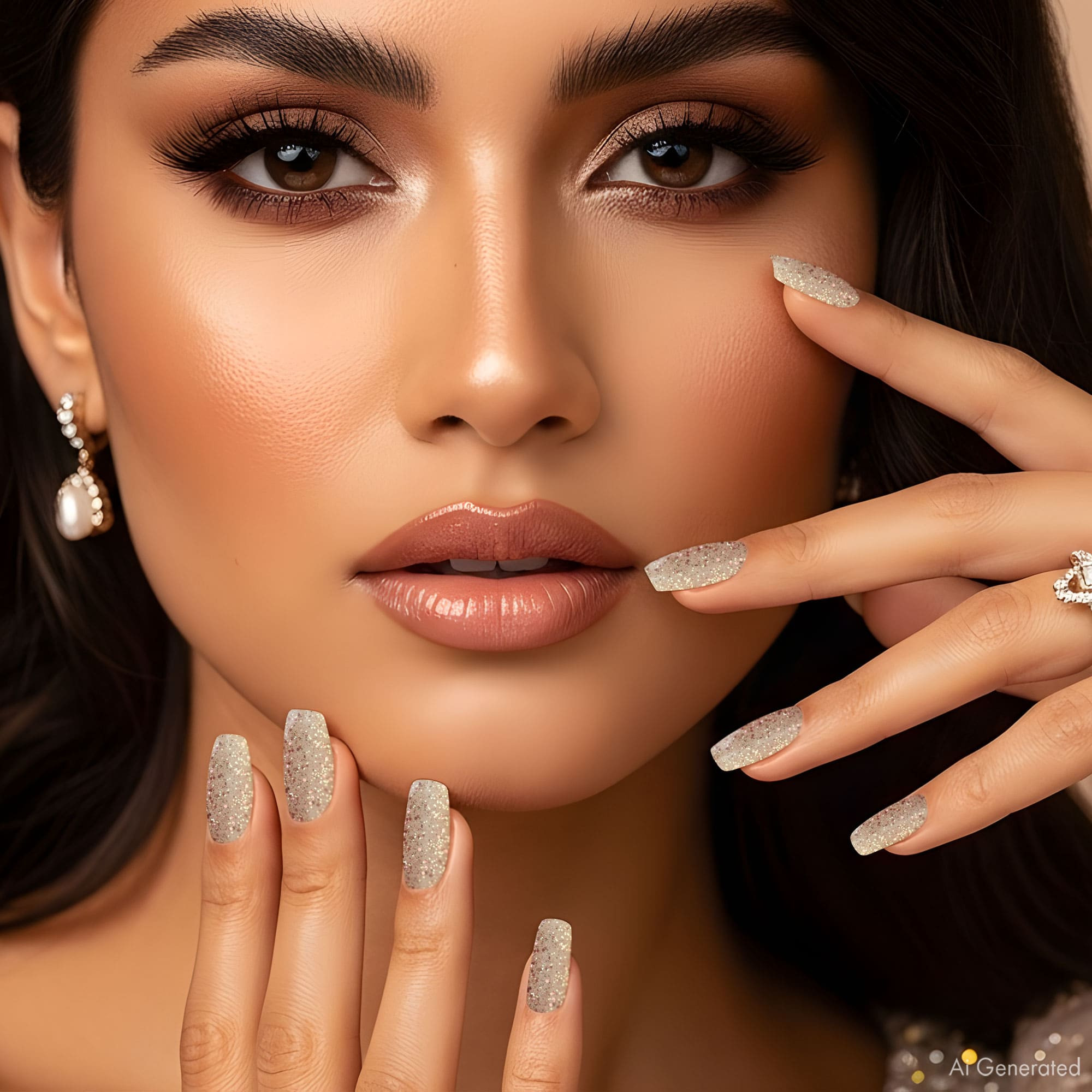 Con el Gel Esmalte Rosa Dorado con Purpurina, tus uñas irradiarán elegancia, delicadeza y un brillo dorado sutil.